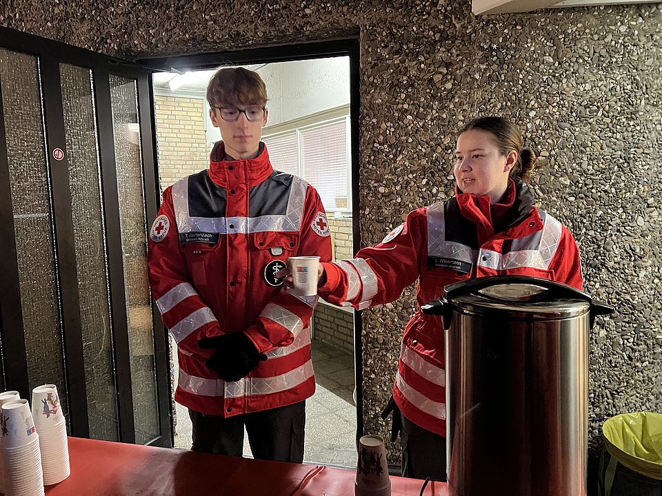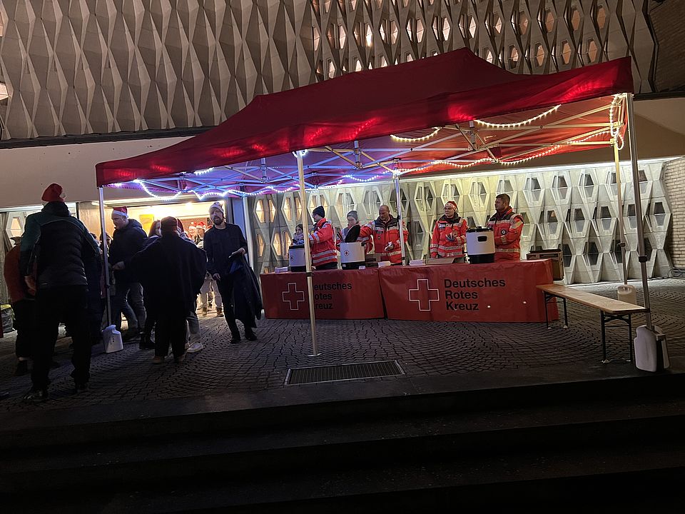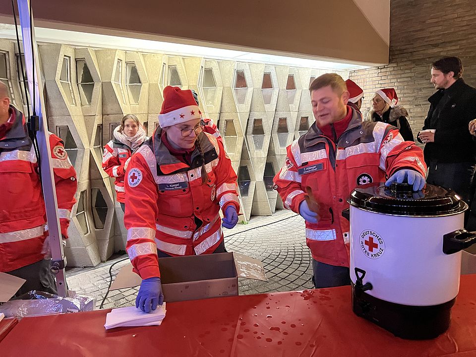 Während sich die Sänger und Sängerinnen bei der Veranstaltung der Evangelischen und Katholischen Kirche " sing and pray" von der kath. Kirche über den Sülztalplatz zur evang. Kirche begaben, begleitet von unserem Sanitätsdienst, bereiteten die Einsatzkräfte des DRK Rösrath vor der Kirche eine Verpflegungsausgabe vor. Frische Brötchen, leckere Würstchen und Glühwein, wurden am Ende der Veranstaltung an Zuhörer und Gäste kostenlos ausgegeben. Noch lange standen die Besucher auf dem Kirchplatz und unterhielten sich, denn das Wetter war kalt, aber trocken und die weihnachtliche Atmosphäre lud dazu ein.