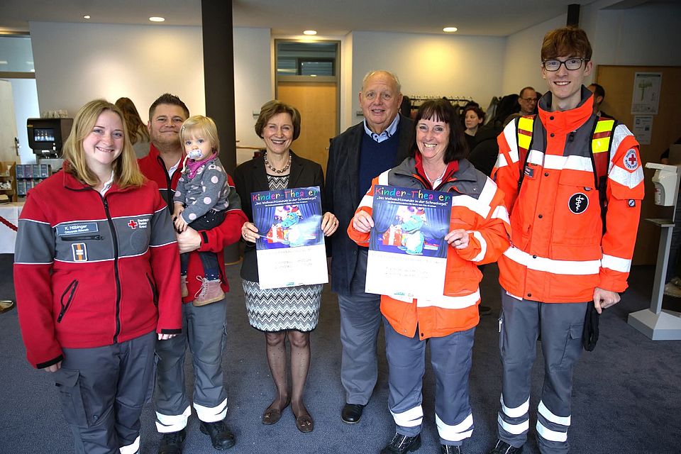 Beim Kindertheater im Gheno-Hotel, organisiert von der Bürgerstiftung, waren auch Einsatzkräfte des DRK Rösrath vor Ort, um bei Bedarf sanitätsdienstlich zur Stelle zu sein. Die kleine Tochter Lina der Bereitschaftsleiterin hatte viel Spaß bei der Vorstellung und klatschte begeistert mit.
